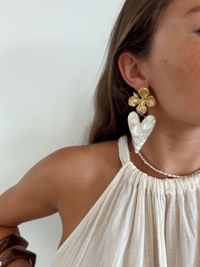 - Boucles d'oreilles nacre coeur